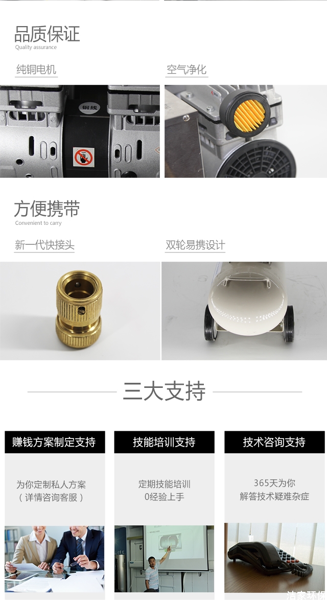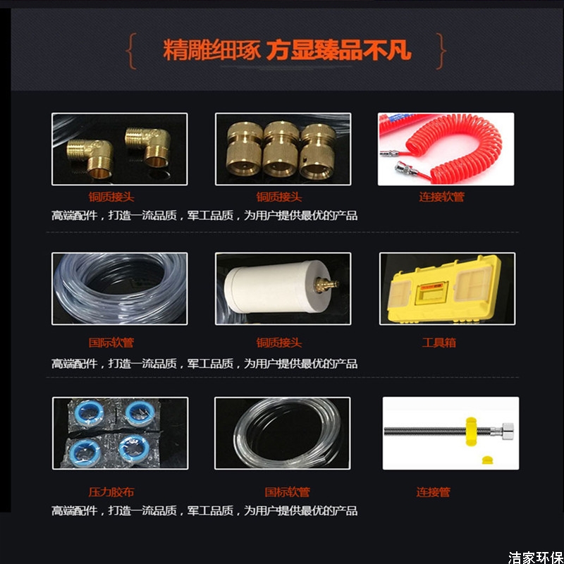 一体化操作,采用脉冲主机和气泵一体化安装,便于携带,祛除复杂地暖管路,无油静音,无油自润滑结构,无源无污染,气压平稳无波动,最大限度减噪音,智能控制,一键清洗,免除繁杂的操作,双重保护,电磁阀保护,泄压阀保护,品质保证,纯铜电机,空气净化,方便携带,新一代快接头,双轮易携设计。